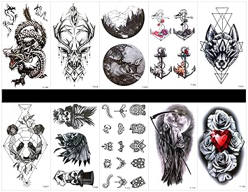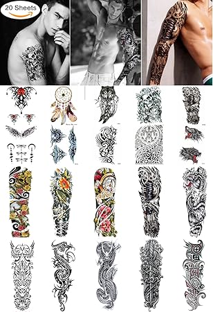 Amazon Com Tafly Temporary Tattoos Full Arm Skull Dragon